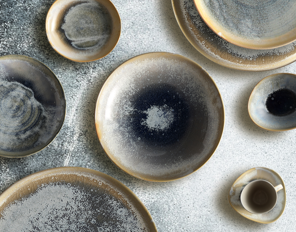 This collection brings a sense of rhythm, stillness, and quiet poetry to the table — as if placing the edge of night and sea gently into everyday life.
